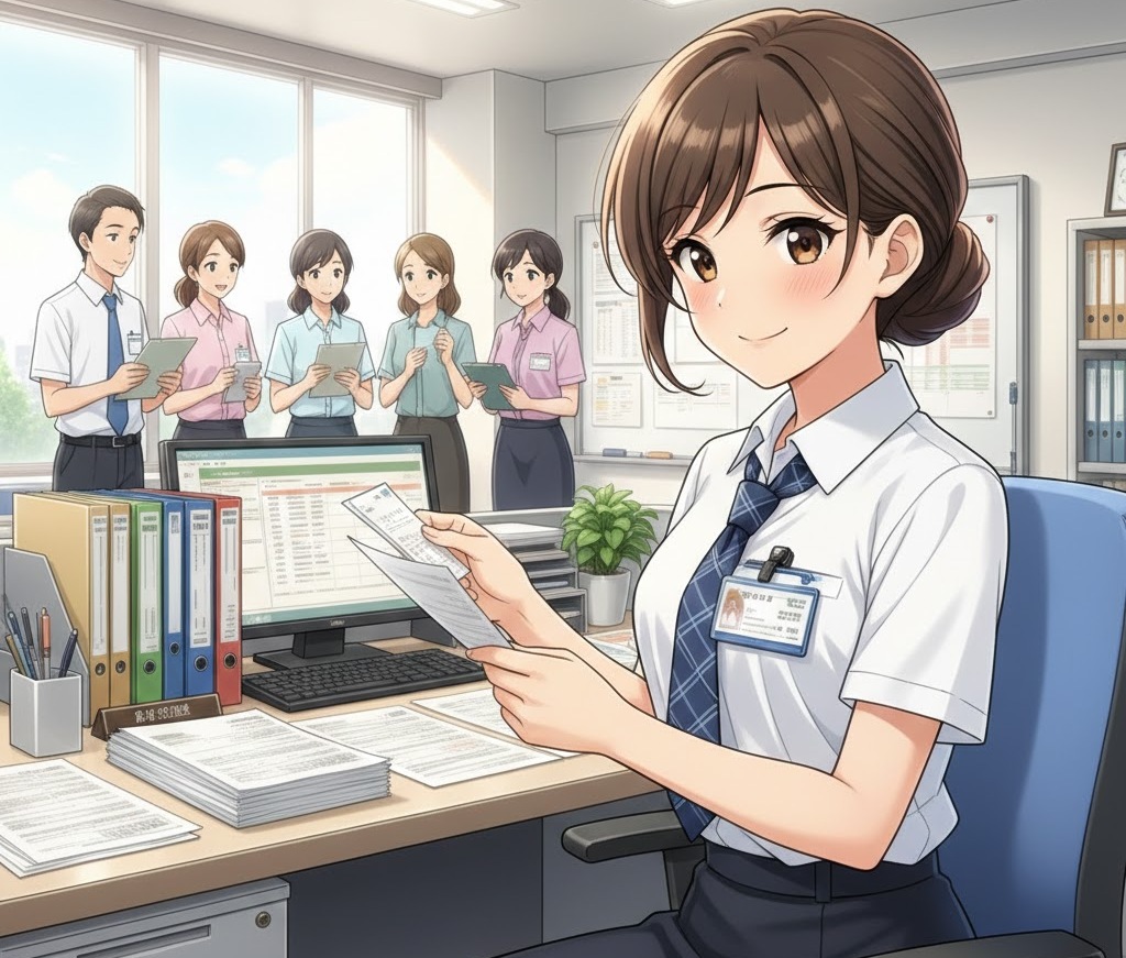 出社をしたら、朝礼を行い、当日担当するお客様の伝票の整理を行います。