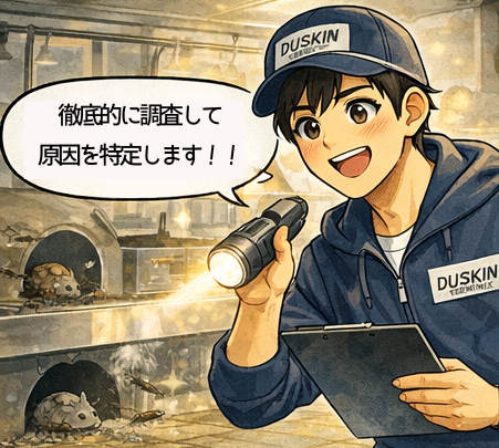 ライトを使って隅々まで。原因を特定するのがプロの第一歩。
